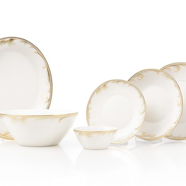 هر سرویس شامل بشقاب غذاخوری خورش خوری سالاد خوری پیش دستی و سایر ظروف کاربردی است.